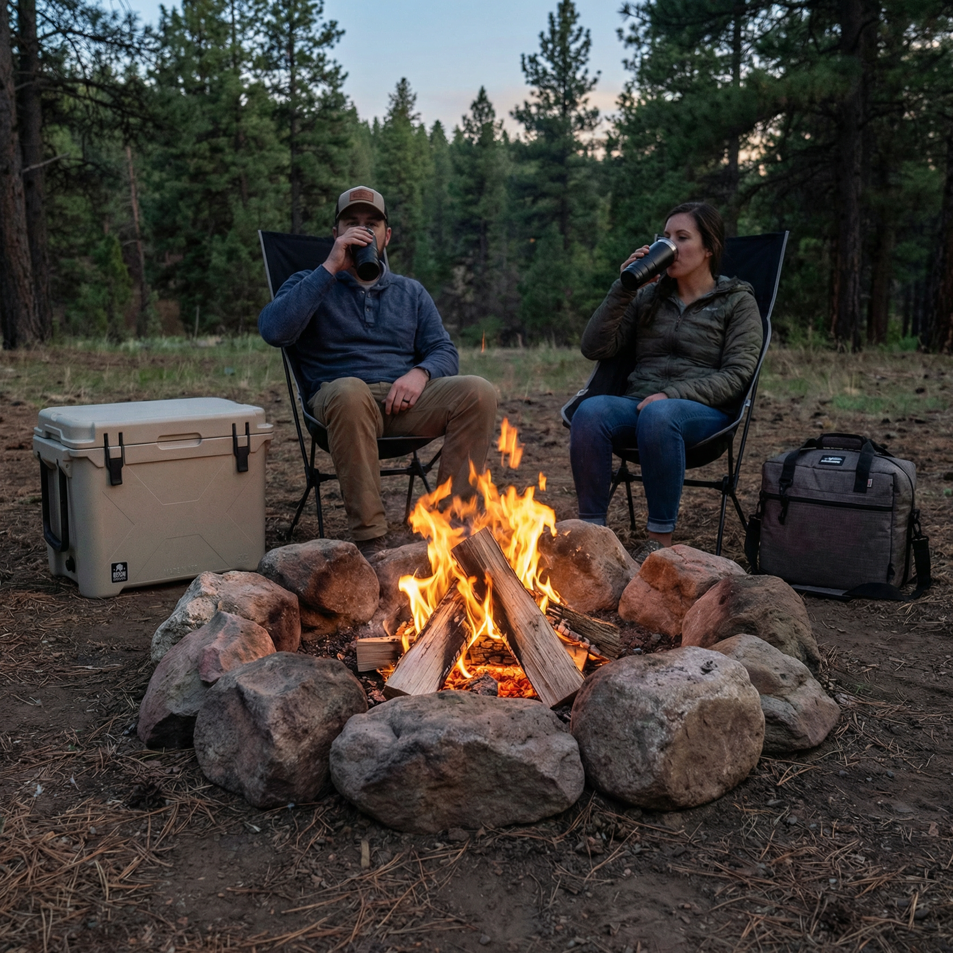 This Bison package has just about everything you will ever need to keep your food and drinks cold and your back and legs rested. This package starts with our American made sand 50 qt cooler, Bison Hauler to help with your loaded down cooler, one American made sand 12-can SoftPak cooler, two black 22 oz tumblers and two Chillin' Chairs.