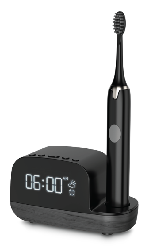 - Brookstone Electric Toothbrush with Wireless Speaker Holder LED Clock and Alarm Function